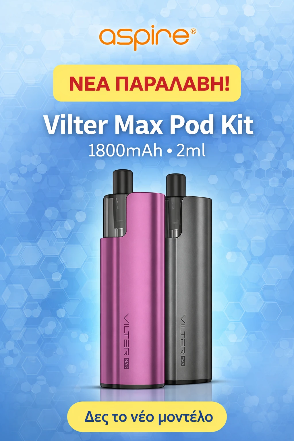 Υπάρχουν Pods, Starter Kits, Advanced Kits, Mods και Pen Kits. Κάθε κατηγορία απευθύνεται σε διαφορετικό επίπεδο χρήστη, από αρχάριους μέχρι προχωρημένους ατμιστές.