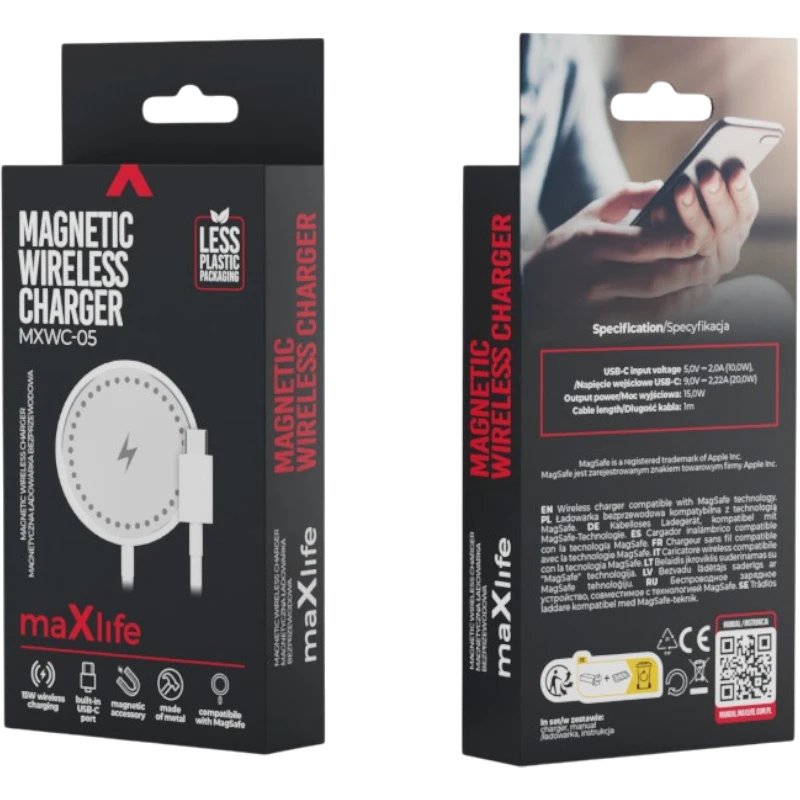 Ο ασύρματος φορτιστής Maxlife MXWC-05 με έξοδο ισχύος 15W εγγυάται γρήγορη και ασφαλή φόρτιση για συσκευές που υποστηρίζουν την τεχνολογία MagSafe, καθώς και για άλλα τηλέφωνα με δυνατότητες ασύρματης φόρτισης. Χάρη στη μαγνητική του σύνδεση, ο φορτιστής στερεώνεται με ασφάλεια στη συσκευή.